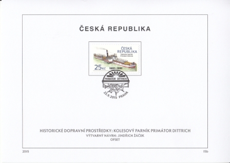 Mi.-Nr.: 859 / Raddampfer Primator Dittrich / Ersttagsstempel: "Primátor Dittrich / 20. 1. 2015 / Praha"
