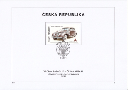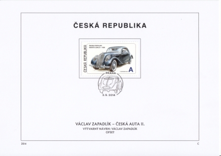 Mi.-Nr.: 817 - 818 Ersttagsstempel: "A" Škoda Popular Monte Carlo - 1938 - "Praha / 3. 9. 2014" "A" Škoda Superb 3000 - 1941 - "Praha / 3. 9. 2014"