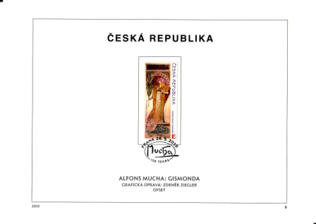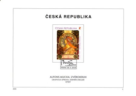 (NL = ETB) / Mi.-Nr.: 633 - 634 / Geburtstag von Alfons Mucha: "Gismonda" / E - "Zvěrokruh / Zodiac" / Z Ersttaghandstempel / SOST: "Praha / 26. 5. 2010 / Mucha / 150 Jahre" Maße ca: 210 x 150 mm