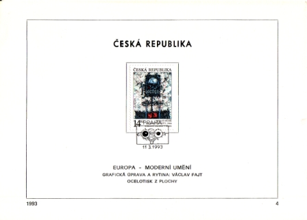 Mi.-Nr.: 5 / Ersttagsstempel: "Praha / 11. 3. 1993" Maße ca: 210 x 150 mm