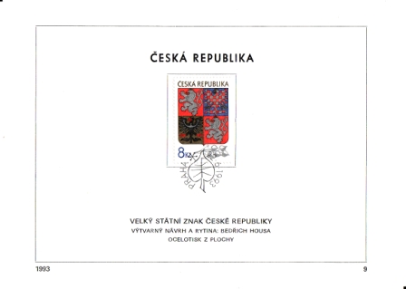 Mi.-Nr.: 10 / Ersttagsstempel: "Praha / 22. 6. 1993" Motiv: Symbole des Staates / der Politik / Staatswappen / Große Staatswappen / der Tschechischen Republik Maße ca: 210 x 150 mm