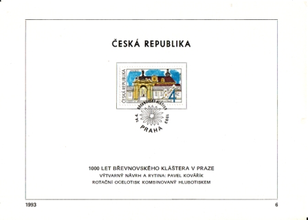 Mi.-Nr.: 7 / Ersttagsstempel: "Praha / 14. 4. 1993 / Břevnovský Klášter (= Brevnov Kloster)" Maße ca: 210 x 150 mm