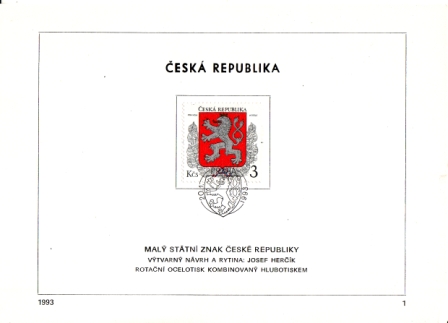 Mi.-Nr.: 1 / Ersttagsstempel: "Praha / 20. 1. 1993" Motiv: Symbole des Staates / der Politik / Staatswappen / der Tschechischen Republik Maße ca: 210 x 150 mm