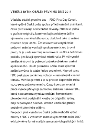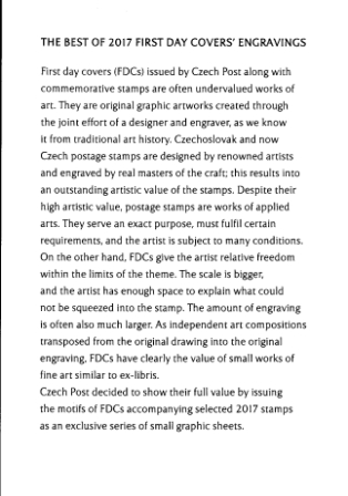 Geschenkalbum / Philatelistisches Souvenir der Tschechischen Post - Außerordentliches Angebot für Gedenkdrucke: DIE AUSWAHL VON GRAVUREN DER FDC´s AUS DEM JAHRE 2017