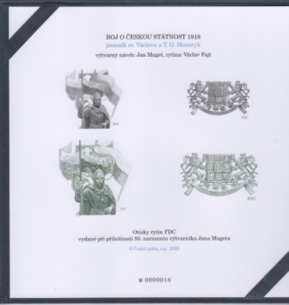Die Česká pošta, s. p. bereitet anlässlich des 80. Jahrestages Geburtstages des Künstlers Jan Maget die Ausgabe eines speziellen Satzes vor. Dieser Satz besteht aus einem Gedenk-Sonderdruck mit dem Abdruck der Gravur aus der Ausgabe „Der Kampf um die tschechische Staatlichkeit “ aus dem Jahre 2018, und aus einem Gedenkblatt zum Geburtstag des Künstlers. Der Gedenk-Sonderdruck mit Abdrucken von beiden FDC´s von V. Fajt in schwarzer Farbe, der mit der Stahldruckmaschine WAITE angefertigt wurde, wird mit einem Begleittext ergänzt, und im unteren Teil nummeriert. Das Gedenkblatt mit den aufgeklebten Briefmarken aus dem Block, mit dem Stempel „Známková tvorba, Praha 3.1.2023“, wird gleich nummeriert, und mit einem Hologramm ergänzt. Der Sonderdruck zusammen mit dem Gedenk-Blatt werden in eine blaue Einlage-Kartonmappe der Česká pošta, s. p. eingelegt.