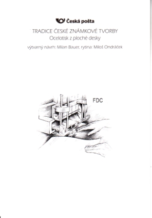 Philatelistisches Souvenir / Schwarzdruck - Entwurf zum FDC POFIS-Nr.: 1148 aus dem Jahr 2022 von Milan Bauer und Stich von Miloš Ondráček zeigt ein Detail des Augenblickes, in dem menschliche Hände Papier in die Druckmaschine einlegen.