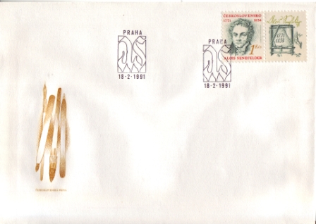 Mi.-Nr.: FDC 3083 / Jahrestage bedeutender Persönlichkeiten / Alois Senefelder (1771- 1834) Erfinder der Lithographie Ersttaghandstempel / SOST: "Praha / 18. 2. 1991" Einzel FDC aus Satz nach POFIS nicht gelaufen Maße ca: 164 x 115 mm