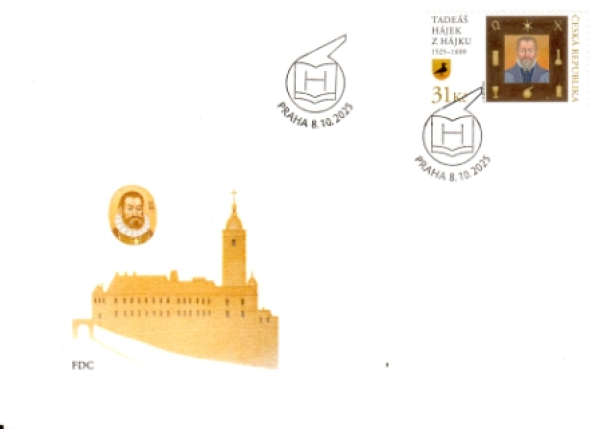 Briefmarke: Das Porträt des berühmten tschechischen Renaissance-Gelehrten Tadeáš Hájek z Hájku.