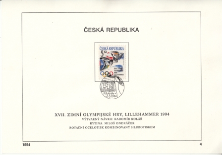 Mi.-Nr.: 034 / Olympische Winterspiele in Lillehammer Ersttagsstempel: "2. 2. 1994 / Praha" Motiv: Veranstaltung / Ereignisse / Sport / Spiel / Olympische Spiele / Ski / Skiläufer Maße ca.: 209 x 146 mm