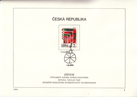 Mi.-Nr.: 044 / Weltkindertag Ersttagsstempel: "1. 6. 1994 / Praha" Maße ca.: 209 x 146 mm
