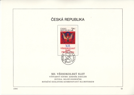 Mi.-Nr.: 047 / Turnfest der Sportvereinigung "SOKOL" Ersttagsstempel: "15. 6. 1994 / Praha" Motiv: Sportverein / Sokol Maße ca.: 209 x 146 mm