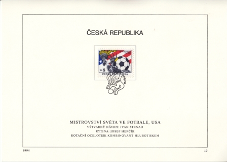 Mi.-Nr.: 045 / Fußball - Weltmeisterschaft in USA Ersttagsstempel: "1. 6. 1994 / Praha" Motiv: Sport / Spiel / Fußball / Europameisterschaft / Olympiade / Weltmeisterschaft Maße ca.: 209 x 146 mm