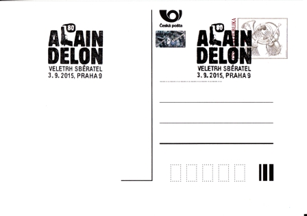 Gefälligkeitsstempel: "Alain Delon / Messe "Sběratel" / 3. 9. 2015 / Praha 9"