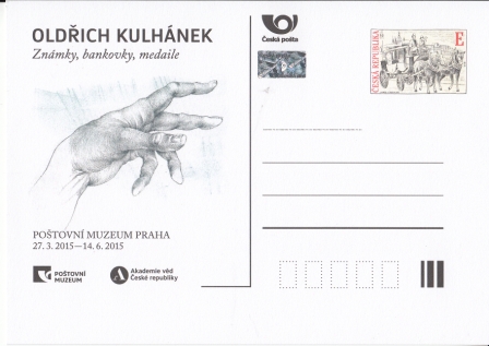 Zudruck sh. Abbildung und Text: "Oldřich Kulhánek - Briefmarken, Geldscheine, Medaillen / Postmuseum Prag 27. 3. 2015 - 14. 6. 2015 / Postmuseum / Naturwissenschaftliche Akademie"