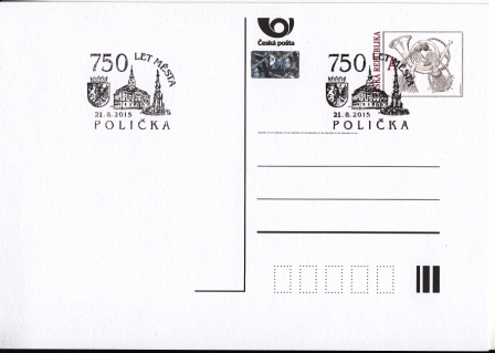 Gefälligkeitsstempel: "750 Jahre der Stadt / 21. 8. 2015 / Policka"