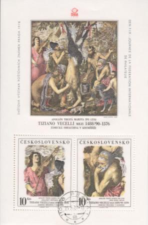 Mi.-Nr.: BL 38 / Internationale Briefmarken Ausstellung PRAGA 1978 / Apollos Begleiter + König Midas ■ Die Schindung des Marsyas - Gemälde von Tizian (1488 / 90 - 1576)