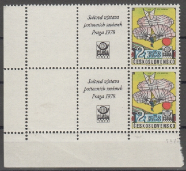 Mi.-Nr.: 2399 / Internationale Briefmarken Ausstellung PRAGA 1978 (V) - Geschichte des Flugwesens / Flugzeg von Otto Lilienthal (1848 - 1896) Achtg! Einzelmarke aus Satz / 1. Reihe: LF + ZF + Marke + 2. Reihe: LF + ZF + Marke
