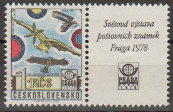 Mi.-Nr.: 2397 / Internationale Briefmarken Ausstellung PRAGA 1978 (V) - Geschichte des Flugwesens / Flugzeug von Clement Ader (1841 - 1925) + Tiefdecker "E - Taube" von Ignaz Etrich (1879 - 1967) + Doppeldecker von Dunn