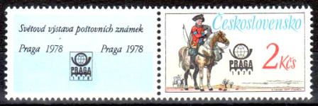 Mi.-Nr.: 2379 / Internationale Briefmarken Ausstellung PRAGA 1978 - Historische Postuniformen / Österreichischer Postreiter (1770) Achtg! Einzel Marke aus Satz / ZF links + Marke