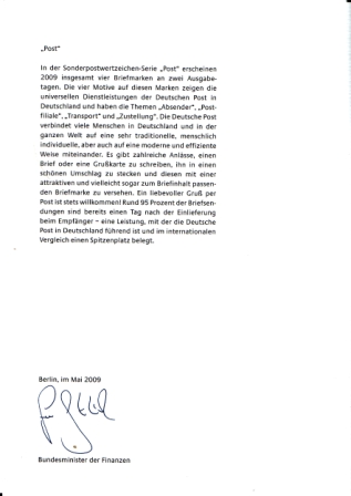 Philatelistisches Souvenir / Faltkarte - Sonderpostwertzeichen - Serie 2009 "Post"