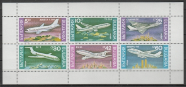 Mi.-Nr.: Bulgarien KLBG 3858 - 3863 / Flugzeuge / Airbus A 300 ● Tupolew TU - 204 ● Concorde ● McDonnell Douglas DC - 9 ● Iljuschin - 86 ● Boeing 747