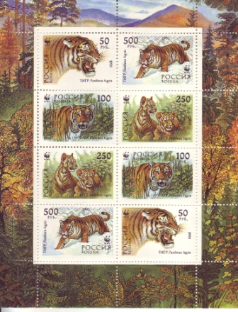 Mi.-Nr.: 343 - 346 / Weltweiter Naturschutz / Sibirischer Tiger Kleinbogen = 8 Briefmarken / 2x 343 + 2x 344 + 2x 345 + 2x 346 / zusammenhängend