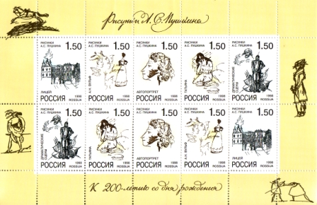 Mi.-Nr.: 659 - 663 / 200. Geburtstag von Alexander Puschkin III. Kleinbogen = 10 Briefmarken (5 verschiedene)
