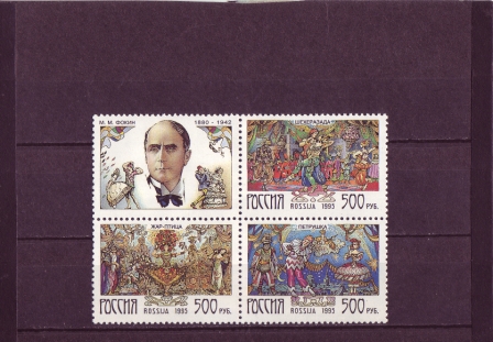 Mi.-Nr.: 410 - 412 / 115. Geburtstag von Michail Fokin Viererblock / ZF + 410 + 411 + 412 / Zusammenhängend