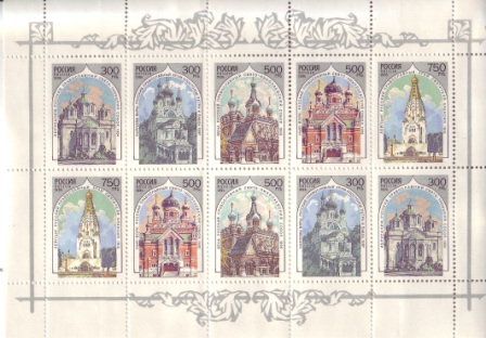 Mi.-Nr.: 449 - 453 / Russisch - orthodoxe Kirchen im Ausland Kleinbogen = 10 Briefmarken (5 verschiedene)