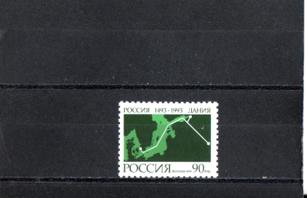 Mi.-Nr.: 319 / 500. Jahre diplomatischen Beziehungen zwischen Russland und Dänemark / Inbetriebnahme des Glasfaserkabels Kopenhagen - Sankt Petersburg - Moskau