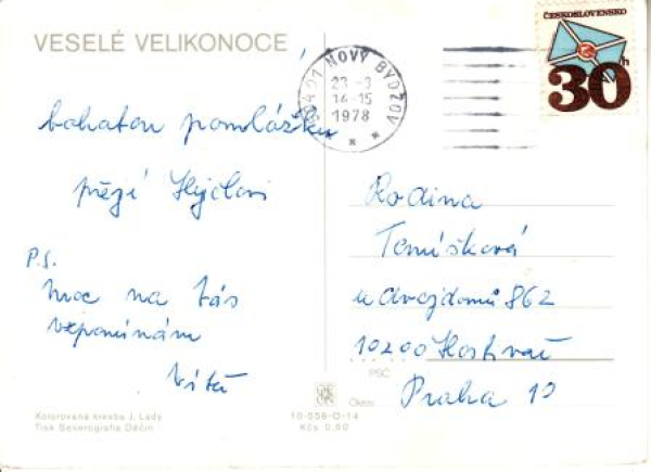 Ansichtskarte nach Praha / Frohe Ostern / Veselé velikonoce / frankiert mit Tschechoslowakei POFIS-Nr.: 2111