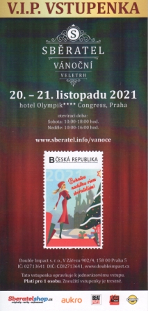 Philatelistisches Souvenir / V.I.P. Eintrittskarte zur internationale Weihnacht Briefmarken-, Münzen-, Karten, Ansichtskarten- und Mineralien Messe "SBÈRATEL" vom 20. - 21. Dezember 2021 Maße ca: 100 x 210 mm