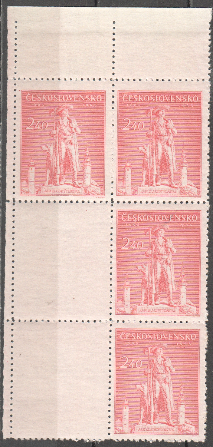 Mi.-Nr.: 478- zusammenhängend / "250.Jahrestag der Hinrichtung von Jan Sladky Kozina" (1652 - 1695), Führer des Bauernaufstandes der Choden - Denkmal von Frantisek Hosek (1871 - 1895)