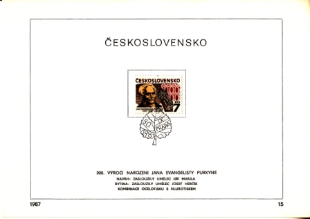 Mi.-Nr.: 2927 / 200. Geburtstag von Jan Evangelista Purkyne Ersttaghandstempel / SOST: "30. IX.1987 / Praha" Maße ca: 210 x 150 mm