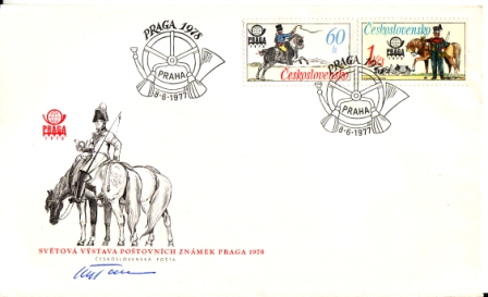 Mi.-Nr.: FDC 2377 - 2380 / Internationale Briefmarken Ausstellung PRAGA 1978 - Historische Postuniformen / Französischer Postreiter (19. Jh.) ■ Österreichischer Postreiter (1838) ■ Österreichischer Postreiter (1770) ■ deutscher Postreiter (ca. 1700)