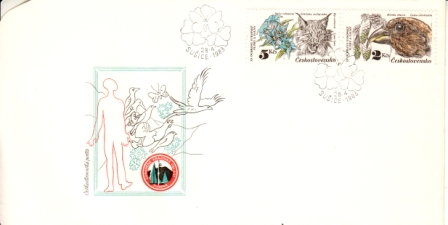 Mi.-Nr.: FDC 2711 - 2716 / Naturschutz / Sudetenveilchen + Kleines Nachtpfauenauge - Martináček habrový ■ Schneeweiße Seerose + Teichfrosch - Skokan zelený ■ Fichtenzweig + Fichtenkreuzschnabel - Křivka obecná ■ Graureiher + Nest mit Jungvögeln - Volavka popelavá ■ Blauer Enzian + Luchs - Rys ostrovid ■ Rothirsch - Jelen evropský