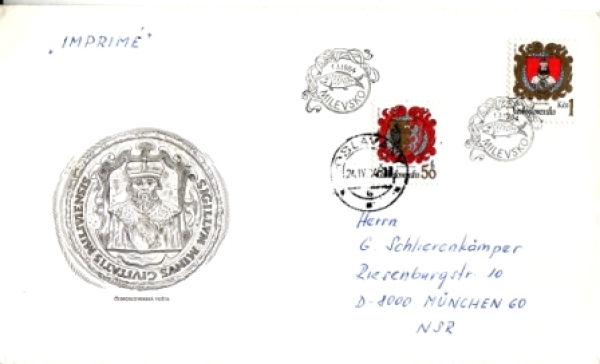 Mi.-Nr.: FDC 2756 / nach München / Städtewappen - Milevsko