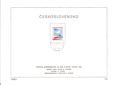 Mi.-Nr.: ETB 2720 / Internationales Friedenstreffen in Prag Ersttaghandstempel: " Weltversammlung für Frieden und Leben, gegen den Atomkrieg / Praha / 6. 6. 1983" nicht gelaufen Masse: 210 x 150 mm