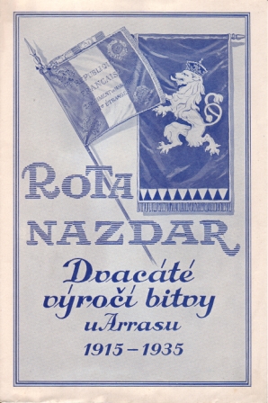 Philatelistisches Souvenir / Faltblatt der Tschechischen Post zum 20. Jubiläum der berühmter Schlacht der Kompanie "Nazdar" bei Arras / herausgegeben zum 20. Jahrestag der Schlacht bei Arras 1915 - 1935