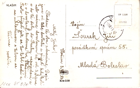 Ansichtskarte nach Mladá Boleslav / Briefmarke wurde abgelöst