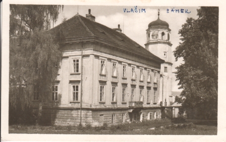 Wlaschim / Středočeský kraj / okres: Benešov / obec s rozšířenou působností: Vlašim / pověřená obec Vlašim / Pohled na zámek - pohled z parku na část zámku s věží zámku / Querformat / černobílá / bez popisu na přední straně / popis na zadní straně "Vlašim - ORBIS - Kčs 2,50" / Schloss Ansicht