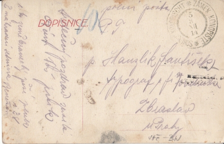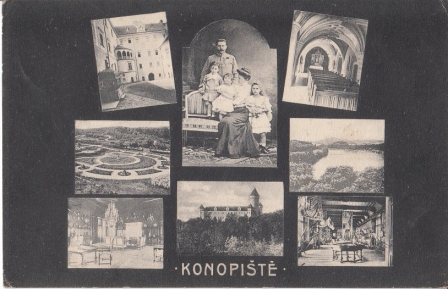 rückseitig Tagesstempel: "Zámek Konopiště / 5. VI. 14" - zweisprachig
