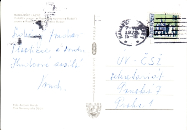 rückseitig Tagesstempel: „Marianske ?????? / 7. ??. 1973“ - Rest unleserlich - Jahrgang mit Vorbehalt + Wellenstempel