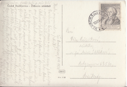 rückseitig Tagesstempel: "Hluboka nad Vl??? / 12. VII. 54" - Rest unleserlich