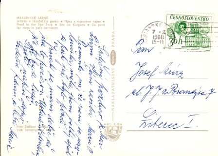 rückseitig Tagesstempel: „Mariánské lázně / 7. X. 1968“ + Wellenstempel