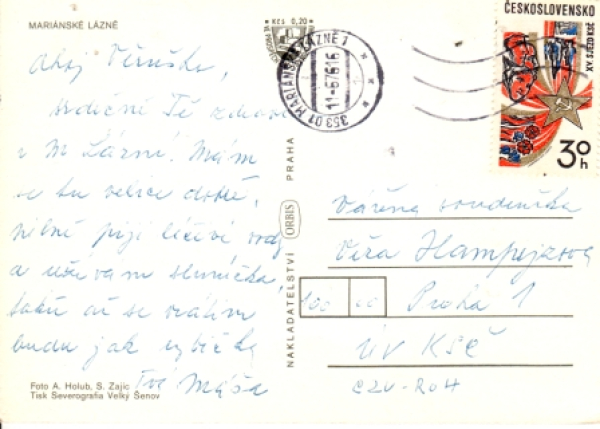 rückseitig Tagesstempel: „353 01 Mariánské Lázně 1 / 11.6. 76“ + Wellenstempel
