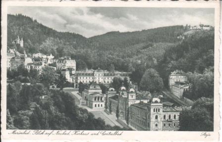 Bemerkung: Marienbad (tschechisch Mariánské Lázně ist ein Kurort im Westböhmischen Bäderdreieck mit etwa 13.000 Einwohnern. Verwaltungspolitisch gehört es zum Bezirk Eger in der Karlsbader Region. Marienbad liegt in 630 m n.m. im Kaiserwald (Slavkovský Les) in dem klimatisch milden, nach Süden hin offenen Tal des Úšovický potok. Nördlich der Stadt befindet sich die Talsperre Marienbad.