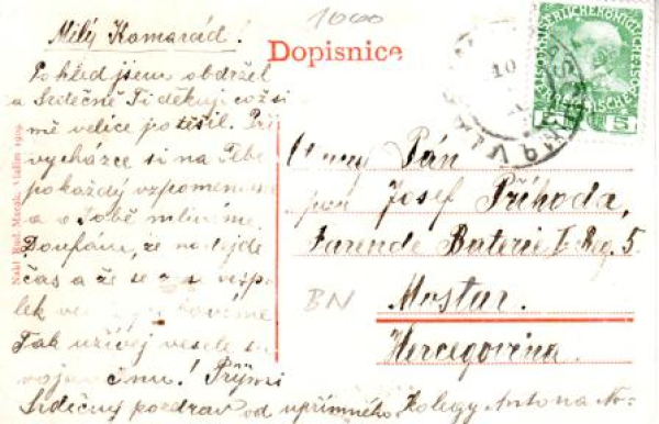 Ansichtskarte nach Mostar / frankiert mit österreichischen Briefmarke sh. Abbildung