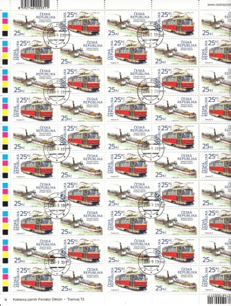 50 Stk.(Schachbrettartiger Zusammendruck 25 Stk. der Briefmarke Straßenbahn T3 und 25 Stk. der Briefmarke Raddampfer Primátor Dittrich) |