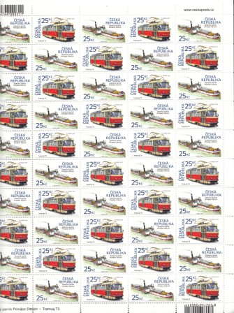 50 Stk.(Schachbrettartiger Zusammendruck 25 Stk. der Briefmarke Straßenbahn T3 und 25 Stk. der Briefmarke Raddampfer Primátor Dittrich) |